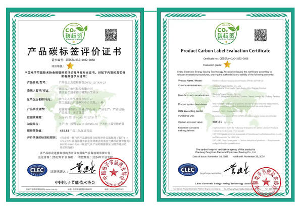 此次碳标签评价表明,亚星游戏官网电气生产的户外柱上真空断路产品,在碳排放大数据方面按国际通行惯例推进,并具备一定的优势,对促进产品全供应链的温室气体减排,达成“双碳”目标具有积极作用。此外,亚星游戏官网还获中国电子节能技术协会颁发的低碳产品供应商证书